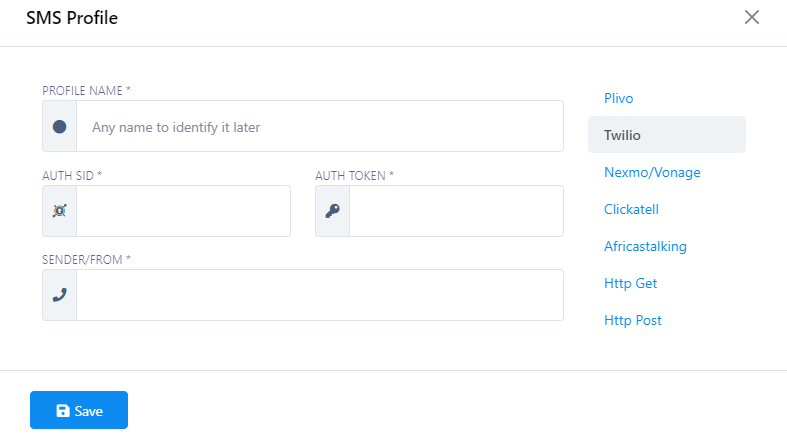 - Save your settings, and your new SMS Profile will be created.