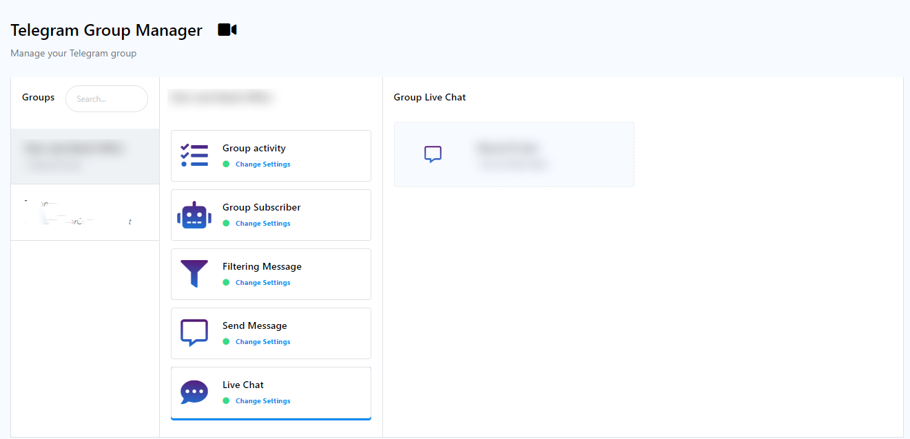 To utilize the Live Chat feature, you must create an account and establish a connection with your Telegram group. Once this connection is established, you can access the Live Chat feature by navigating to the `Live Chat` tab within the dashboard.