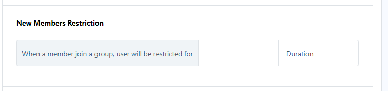 New Members Restriction: This functionality allows you to specify the duration of time a new member joining the group will be restricted for.