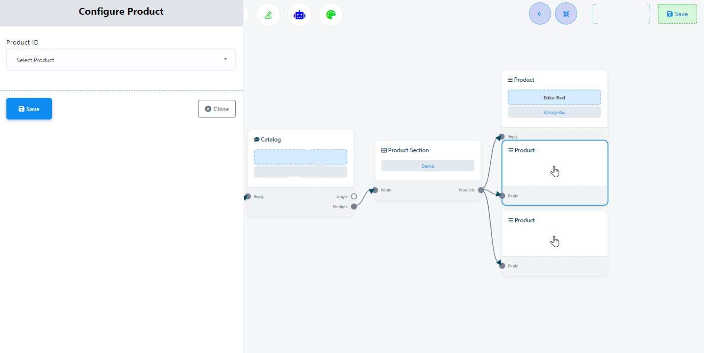 - Once you have configured your ecommerce store within the flow builder, make sure to save your changes. Afterward, you can publish your chatbot with the ecommerce feature.